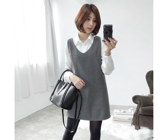 搭上毛呢的背心罩衫